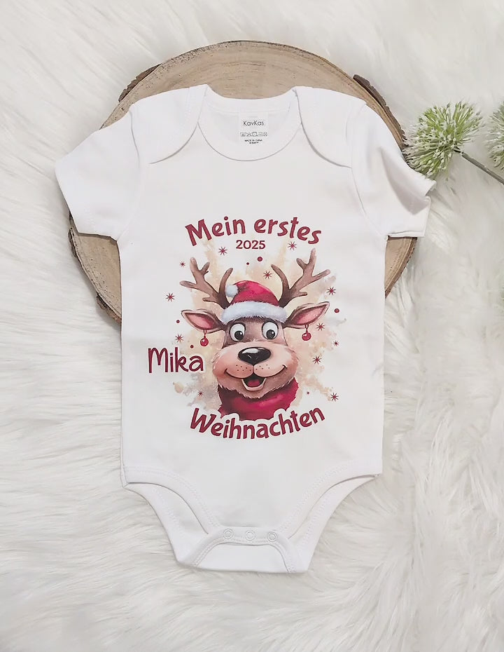 Mein erstes Weihnachten Baby Outfit Body Rentier Elch Junge Babybody Langarm oder Kurzarm