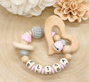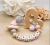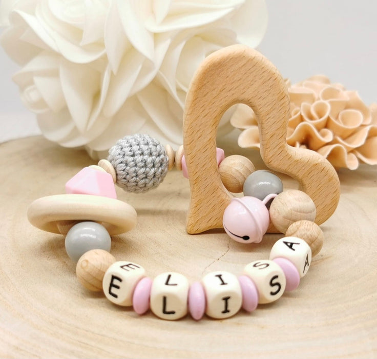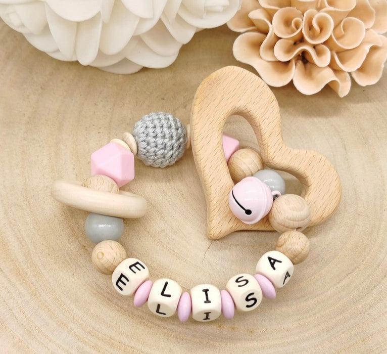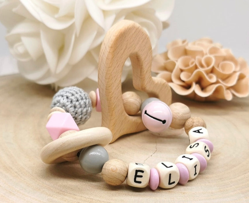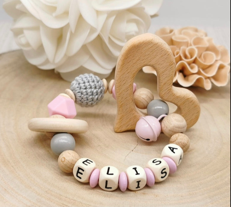 Greifling Baby personalisiert mit Namen Beißring Rosa Geschenk Geburt Greifring Rassel