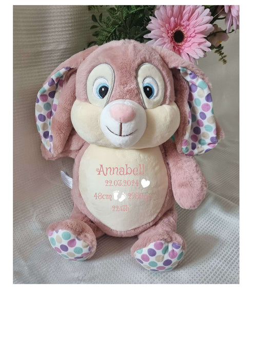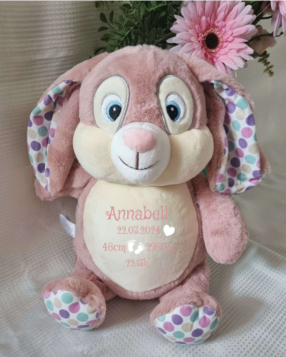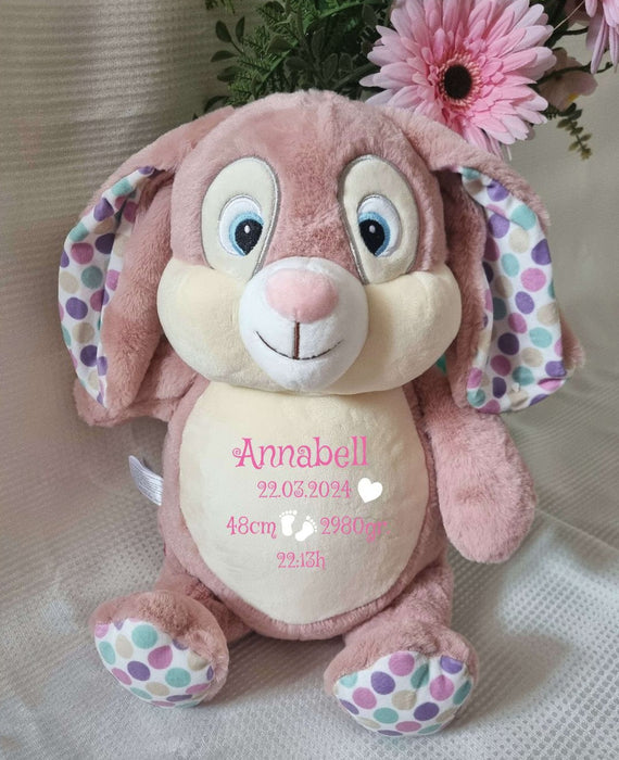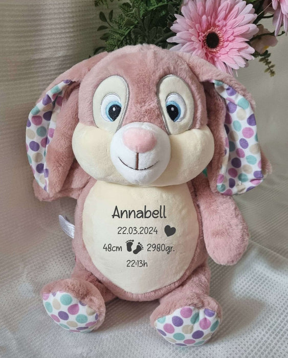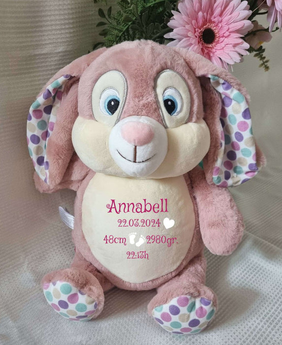 Personalisiertes Kuscheltier Hase mit Name Mädchen Plüschtier Stofftier Baby Geburtsdaten Taufgeschenk Taufe