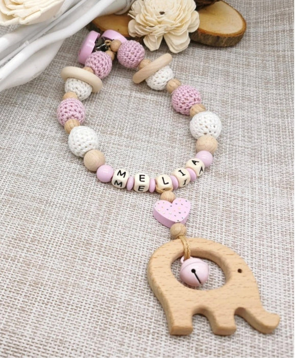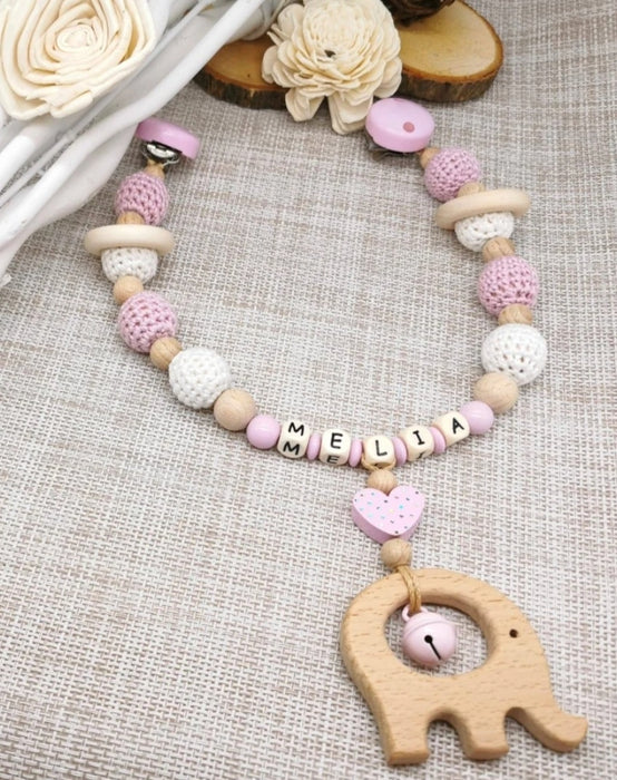 Kinderwagenkette mit Namen in Rosa / Weiß