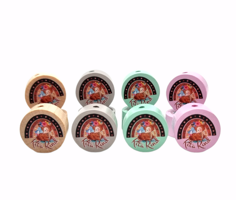 Unsere Motivscheiben lassen sich äußerst vielseitig verwenden. Sie eignen sich besonderst schön für Schnullerketten, Greiflinge oder Kinderwagenketten. Lass deiner Phantasie freien lauf.