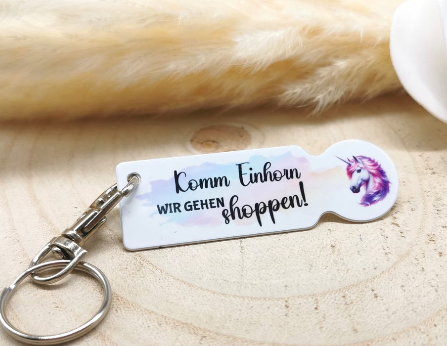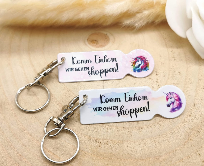 Einkaufswagenlöser Wagenlöser Komm Einhorn wir gehen shoppenSpruch Einkaufen Löser Geschenk 1 Euro Ersatz