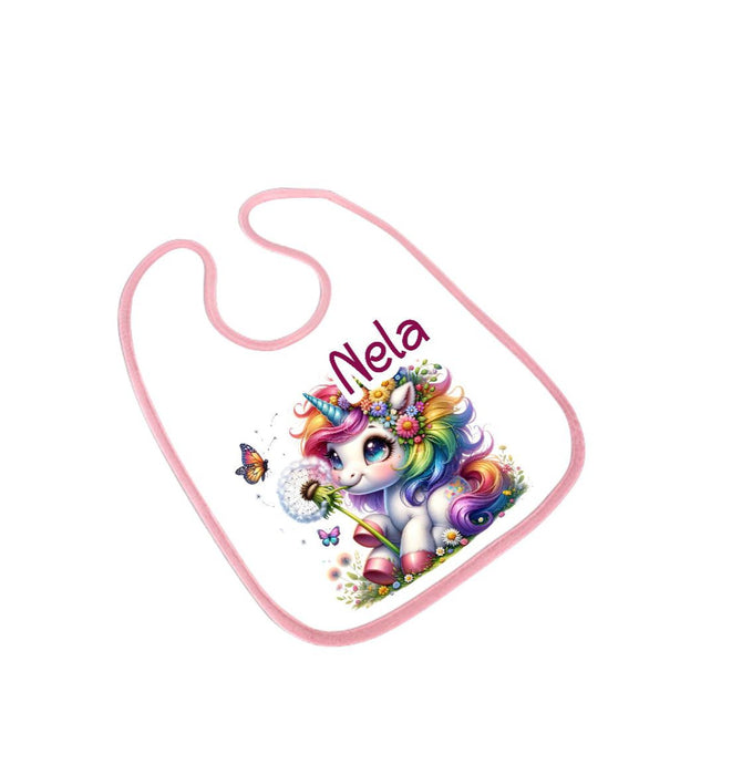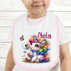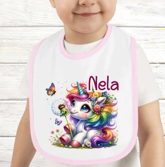Personalisiertes Baby Lätzchen Einhorn aus Frottee mit Klettverschluss Sabberlatz mit Namen Mädchen