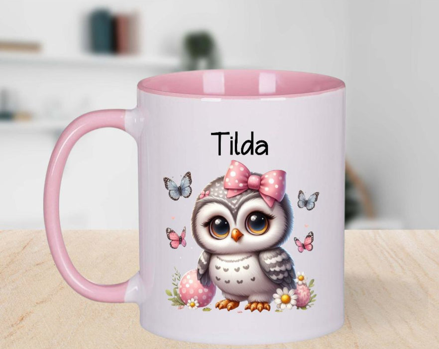 Personalisierte Tasse Eule Kindertasse mit Name Mädchen Emaille Keramik Namenstasse