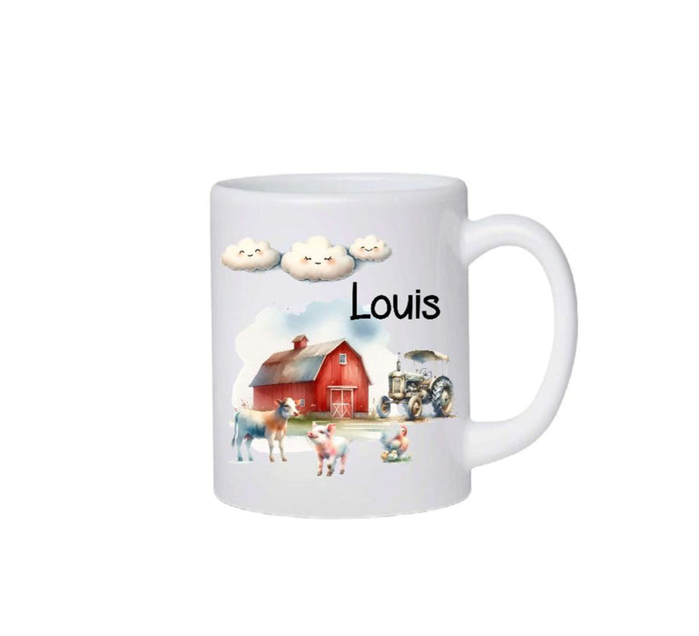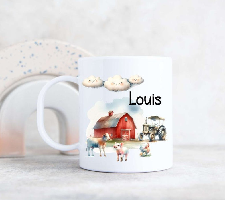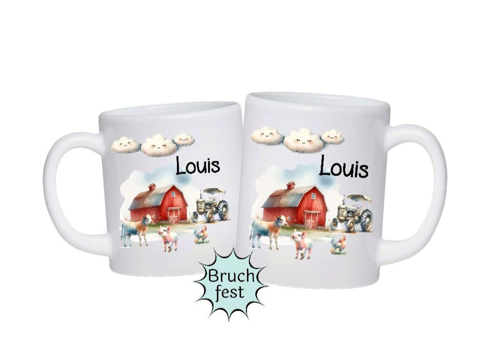 Kindertasse bruchsicher Bauernhof personalisiert mit Name Kunststoff Lerntasse Namenstasse