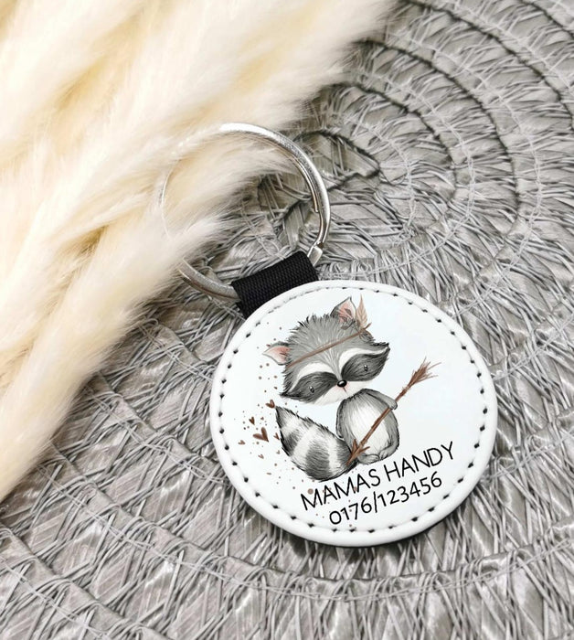 Schlüsselanhänger Anhänger Notfallnummer Waschbär Geschenk