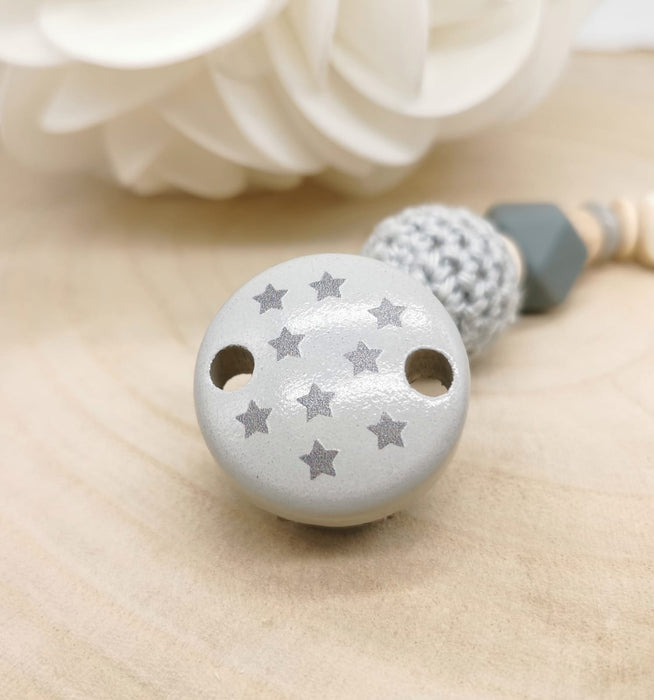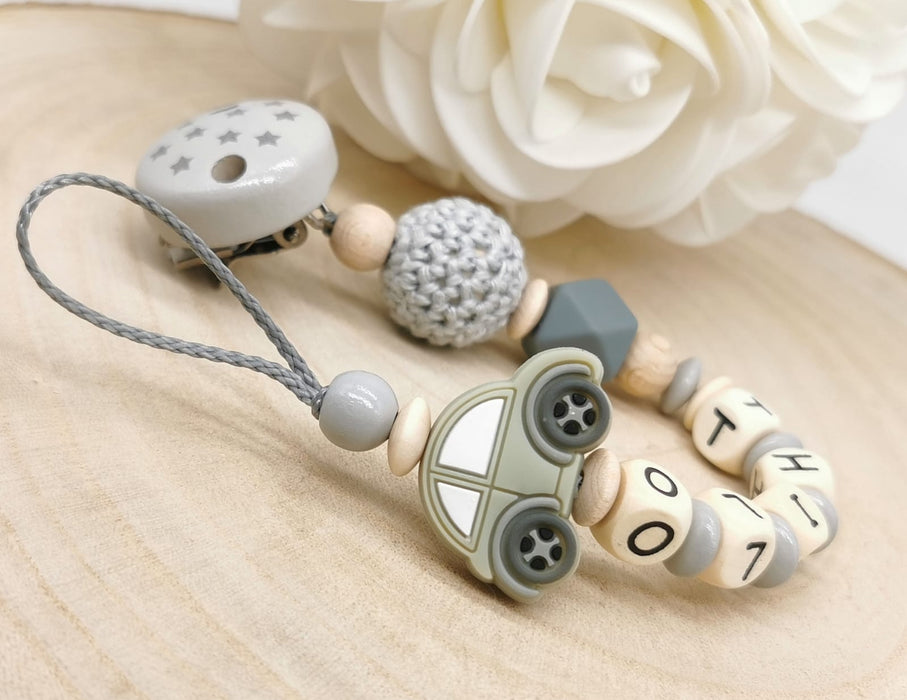 Die Schnullerkette ist ein ganz persönlicher Begleiter durch die aufregende Babyzeit! Dieses individuelle Baby Accessoires mit dem Namen Deines Kindes macht sie unverwechselbar und zu etwas ganz Besonderem. Der Schnulleralarm für Mama und Papa haben endlich ein Ende!