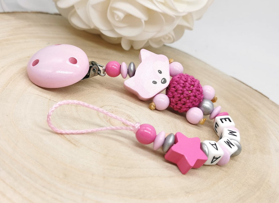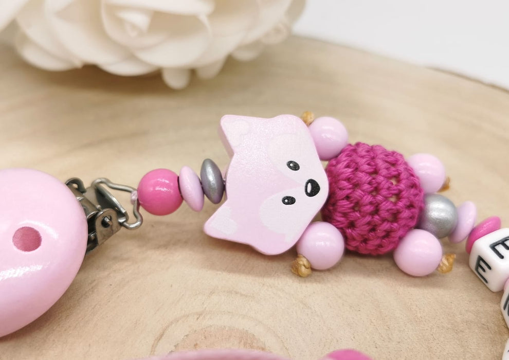 • Befestigen Sie den Schnullerhalter niemals an Schnüren, Bändern, Trägern oder losen Teilen der Kleidung. Ihr Kind kann sich damit erdrosseln.