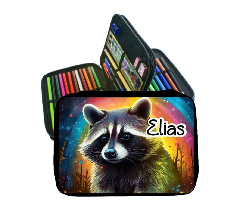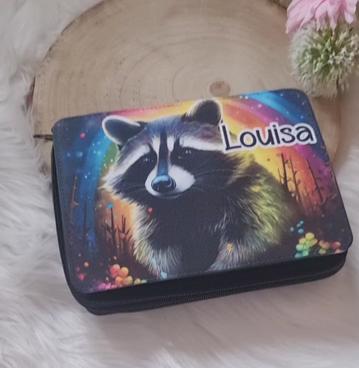 Federmäppchen mit Name Waschbär Junge Mädchen personalisiert Geschenk Einschulung Federmappe Federpenal