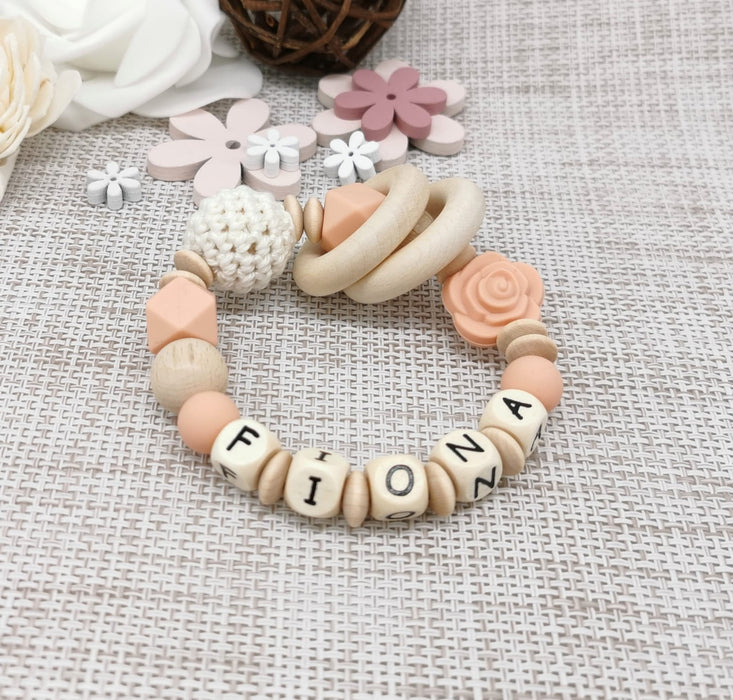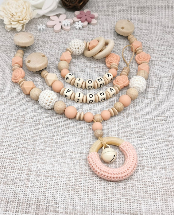 Set Kinderwagenkette & Greifling & Schnullerkette mit Namen