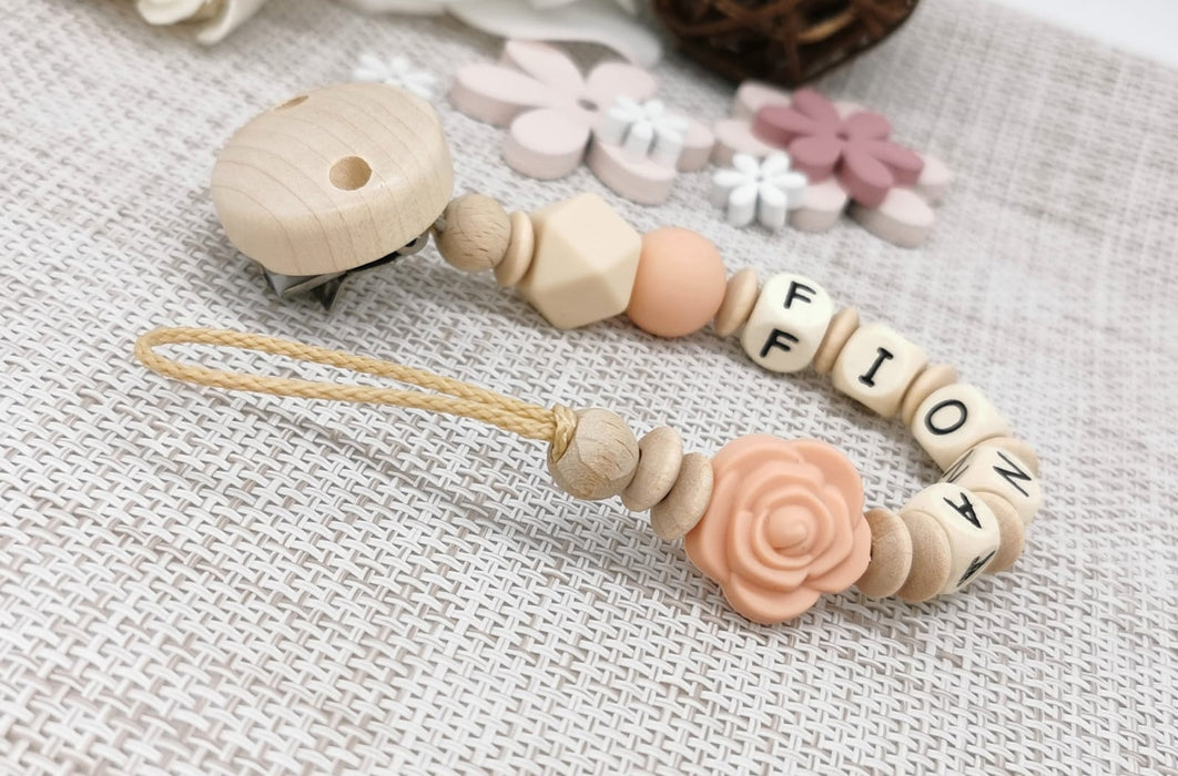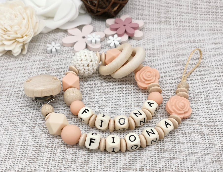 Viel Freude an Ihrem Set Kinderwagenkette & Greifling & Schnullerkette mit Namen