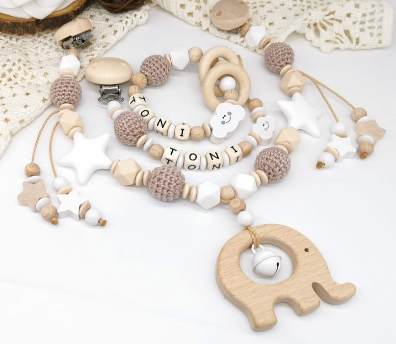 Viel Freude an Ihrem Set Set Kinderwagenkette & Greifling & Schnullerkette Mädchen