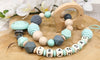 Set Greifling & Schnullerkette mit Namen Junge Mädchen Mintgrün