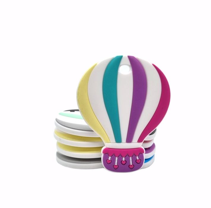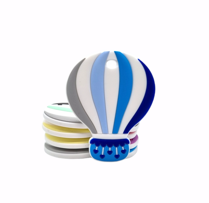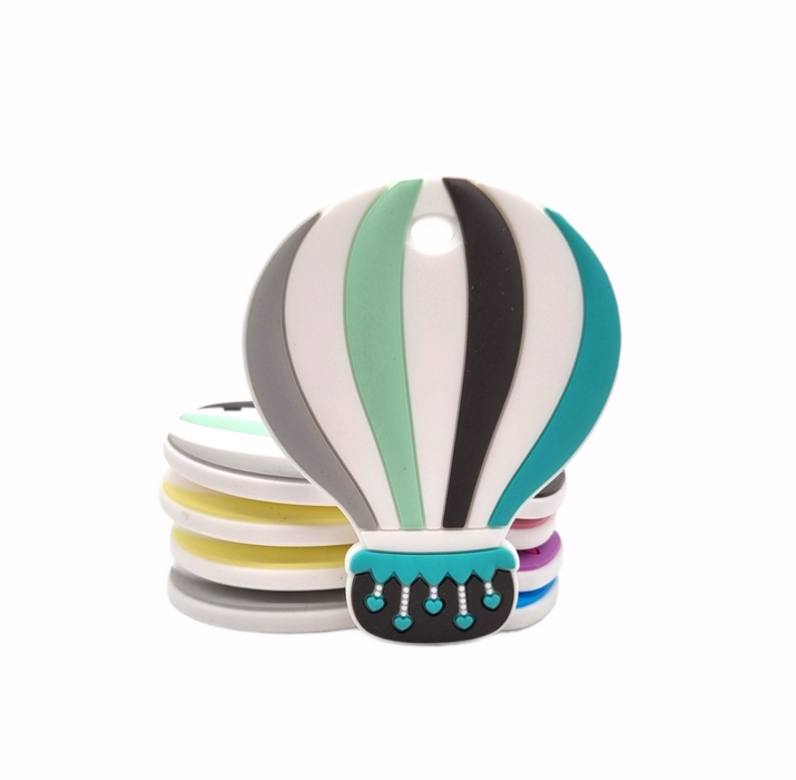 Mit diesen farbenfrohen Silikon Heißluftballons lassen sich z.b, in Kombination mit unseren Silikon Perlen, ganz individuelle Beißringe kreieren. Passend dazu bieten wir die Silikon Motivperlen Heißluftballon und Regenbogen auch in unserem Shop an. In Verbindung mit Naturholz macht dieser Heißluftballon auch einiges her, probier es einfach mal aus. Du kannst ihn natürlich auch mit unseren Silikon Hexagons kombinieren,. Viele Möglichkeiten bieten sich an um ein einzigartiges Babygeschenk zu entwerfen.