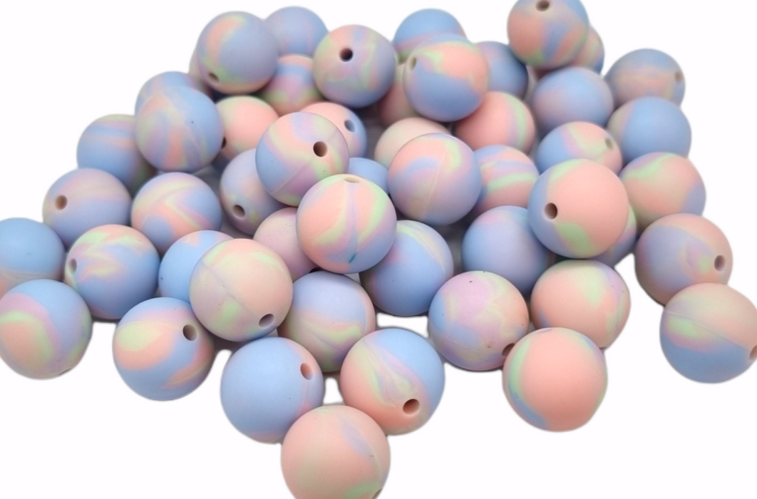 Silikonperle 15 mm Buntmix Blau / Rosa / Gelbgrün