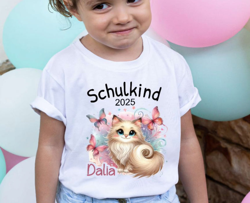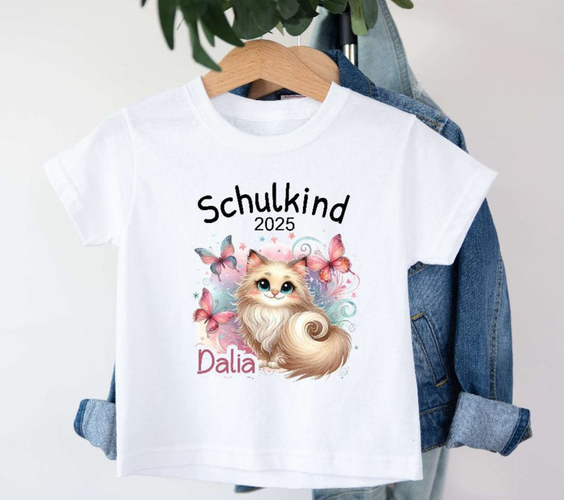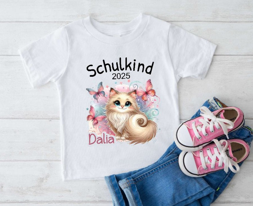 T-Shirt Schulkind Katze mit Name personalisiert Mädchen Einschulungsshirt Einschulung erste Klasse Geschenk Erstklässler Outfit