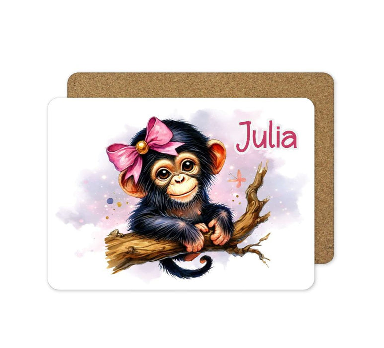 Tischset Kinder rutschfest personalisiert mit Name Affe Mädchen Platzdeckchen Platzset