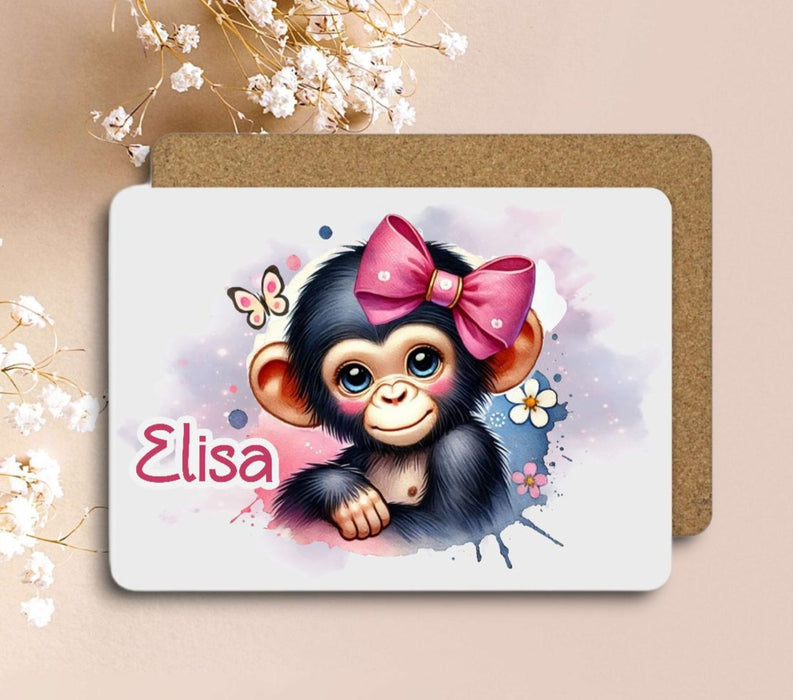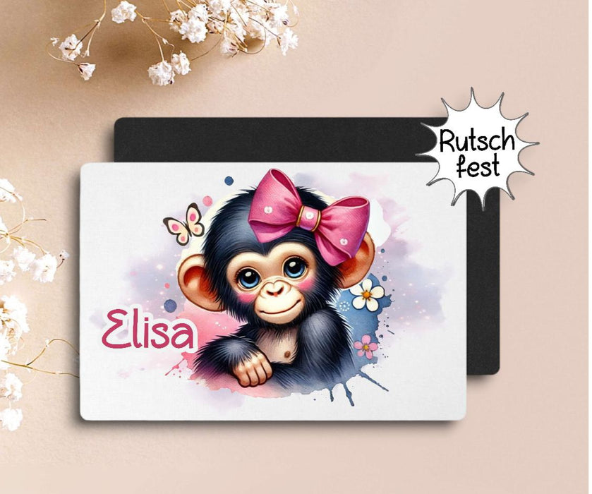 Tischset Kinder rutschfest personalisiert mit Name Affe Mädchen Platzdeckchen Platzset