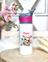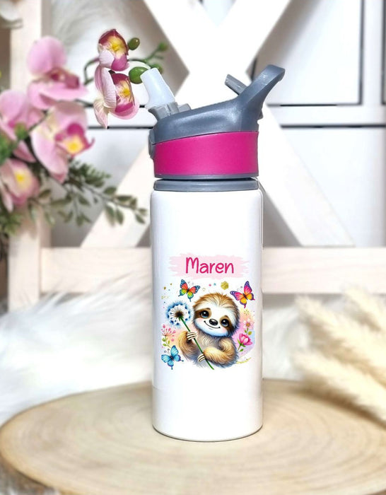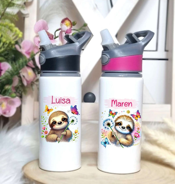 Personalisierte Trinkflasche mit Namen und Strohhalm Faultier Wasserflasche aufklappbares Mundstück