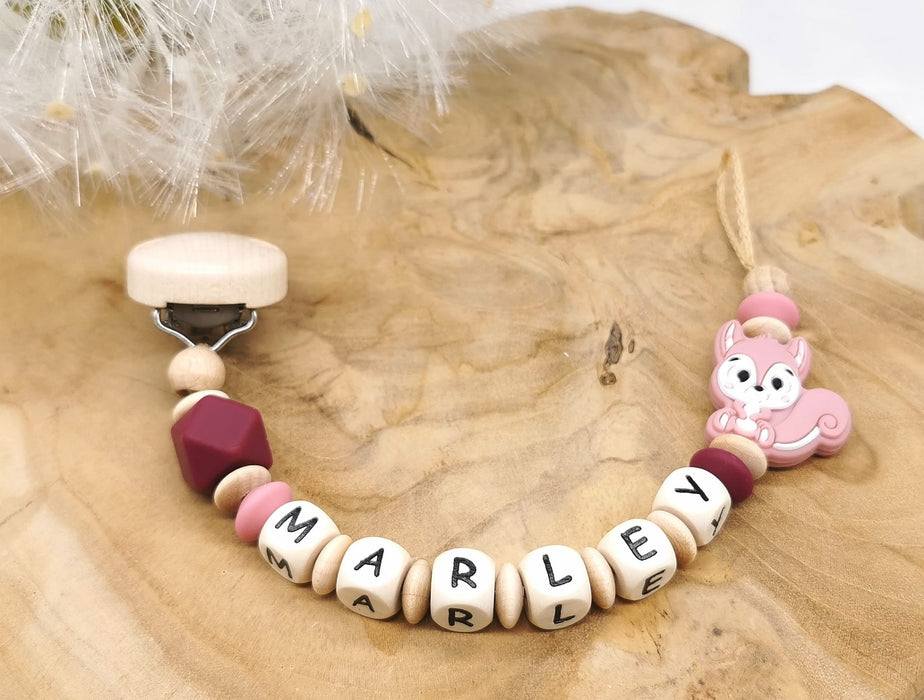 Viel Freude an Ihrer Schnullerkette Eichhörnchen mit Namen