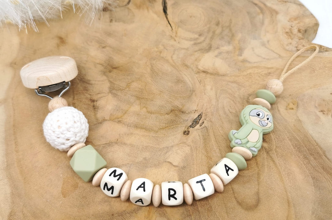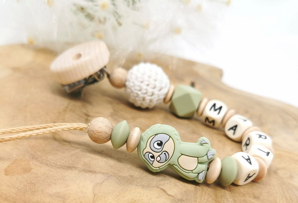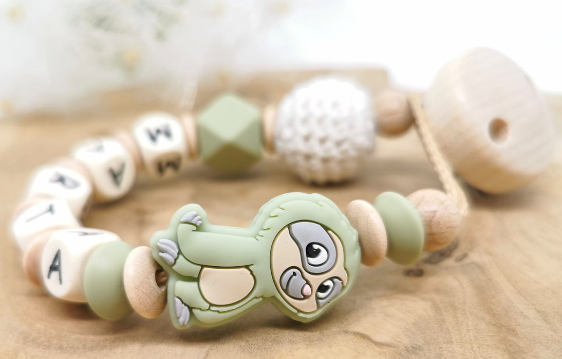 Viel Freude an Ihrer Schnullerkette Faultier mit Namen