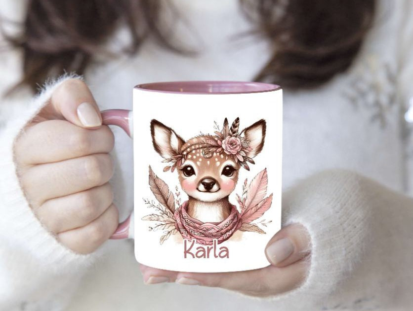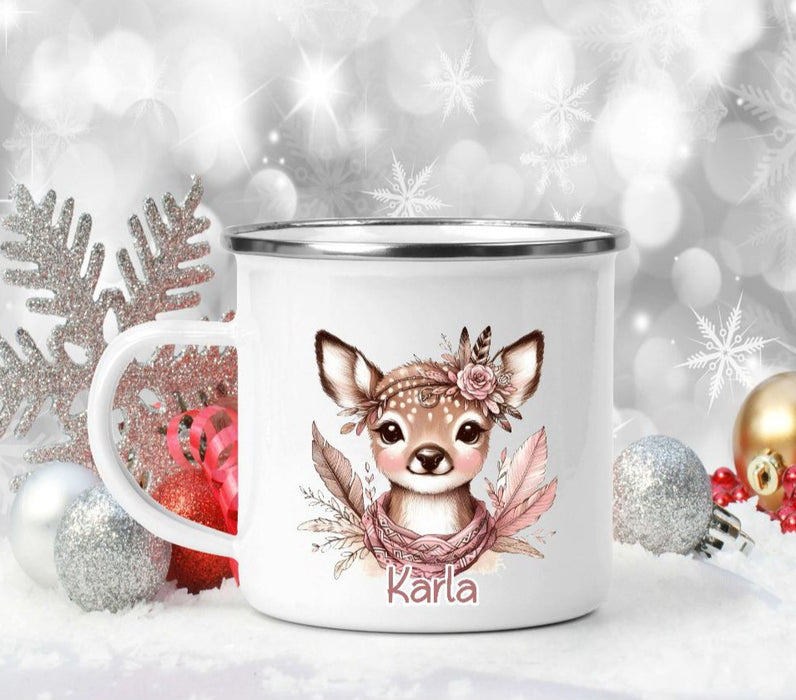 Weihnachtstasse Reh Tasse Weihnachten personalisiert Kindertasse Mädchen Nikolaus Geschenk