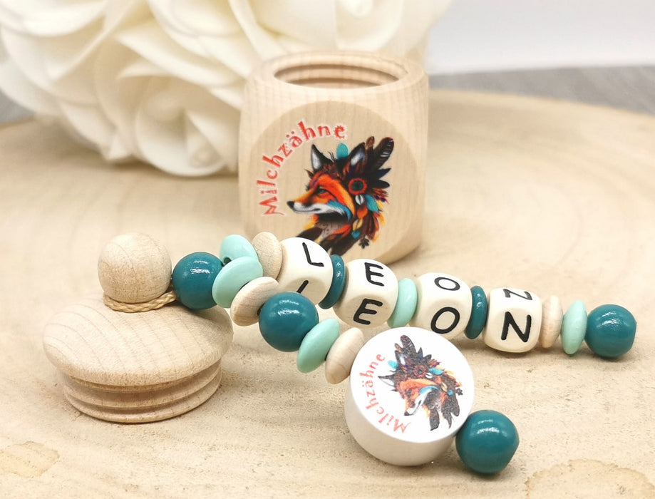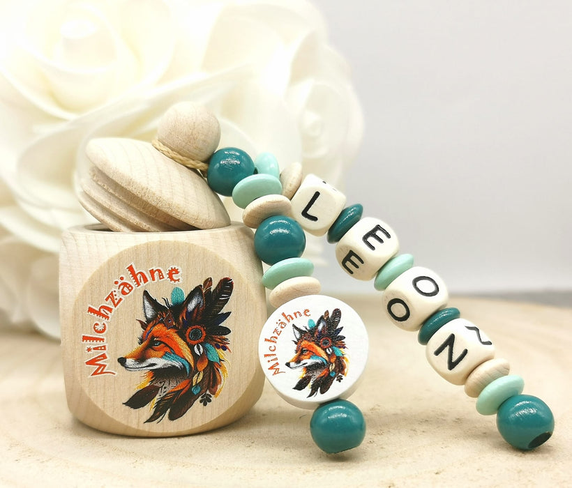 Milchzahndose Zahndose personalisiert Fuchs mit Name Indianer Holz Schraubverschluss