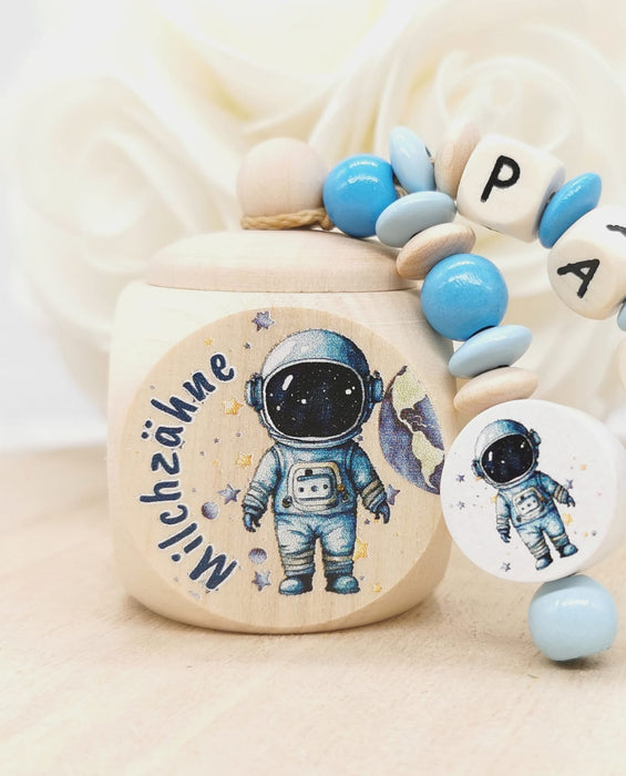 Bei dieser hübschen Zahndose kommt die Zahnfee sicher gerne vorbei und lässt eine extra große Überraschung unter dem Kissen da. Zusammen mit dem Namensanhänger hast Du eine schöne Aufbewahrungsmöglichkeit für die ersten Milchzähne.