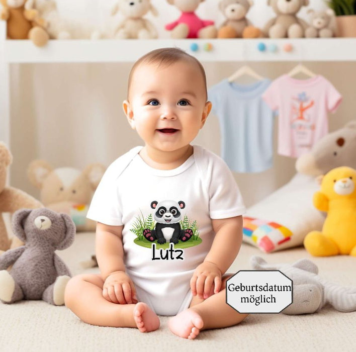 Babybody personalisiert Pandabär Baby Body mit Name Junge Baumwolle Strampler Baby