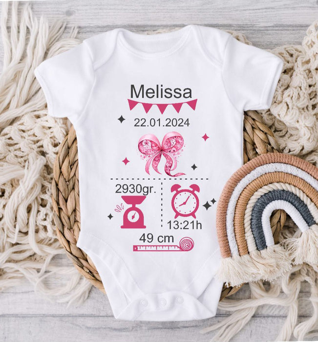 Babybody personalisiert Geburtsdaten mit Name Mädchen Body Kurzarm Langarm Baumwolle