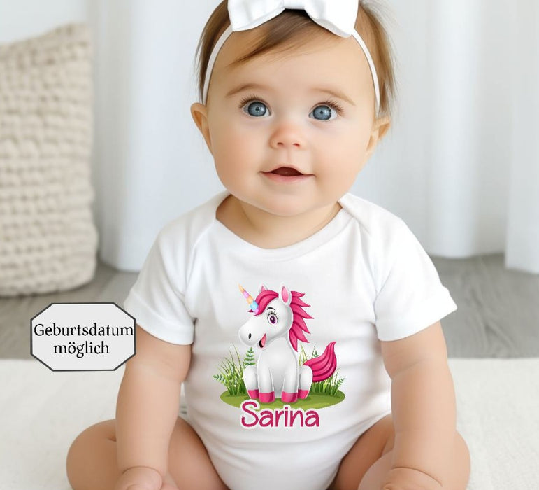 Babybody personalisiert Baby Body mit Name Einhorn Mädchen Baumwolle Strampler Baby