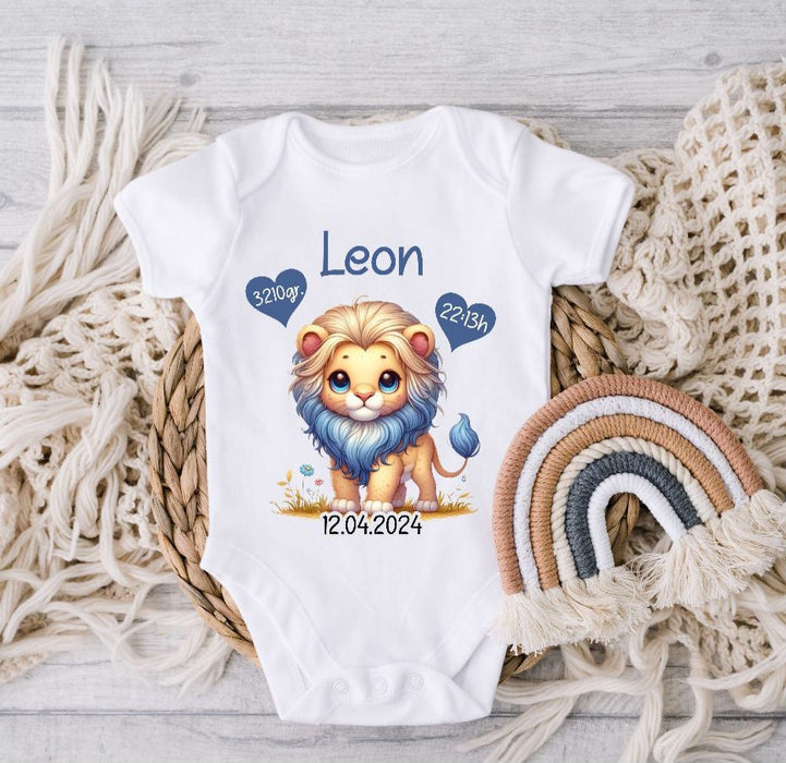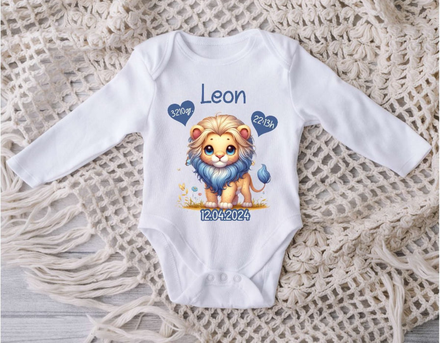 Babybody personalisiert Baby Body mit Name Löwe Junge Baumwolle Strampler Baby