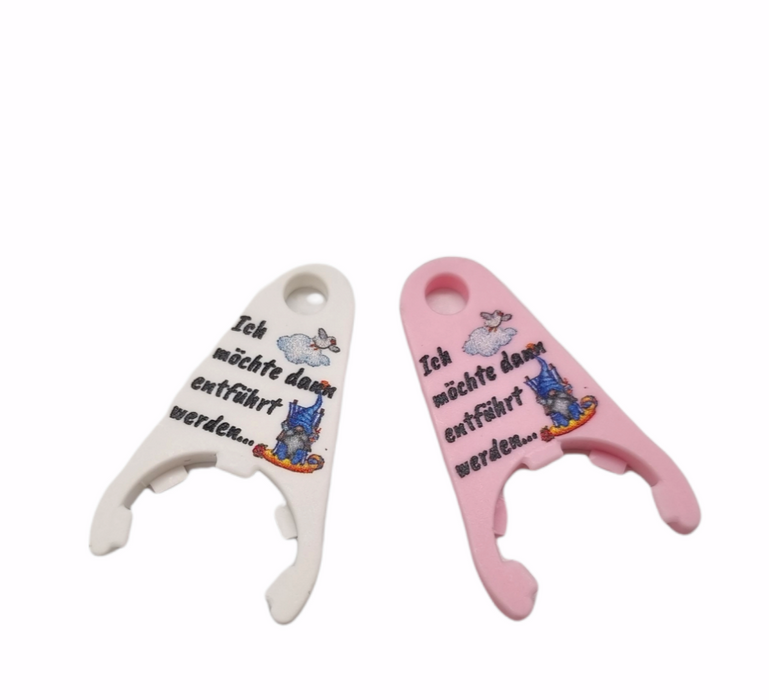 Durch das Loch am Ende des Halters ist es ganz einfach den Halter am Schlüsselring oder Bund zu befestigen.