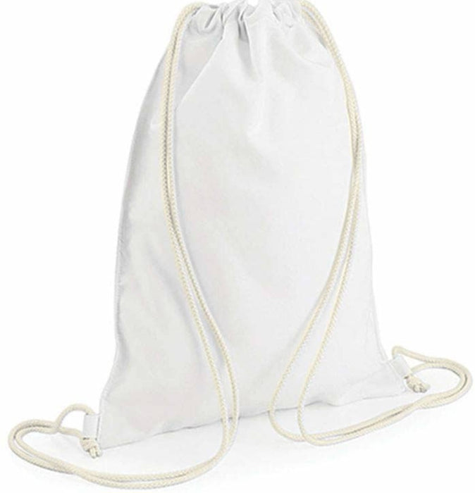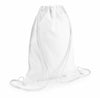 Variante 1: Der Turnbeutel besteht aus leicht glänzendem, weißen Stoff.