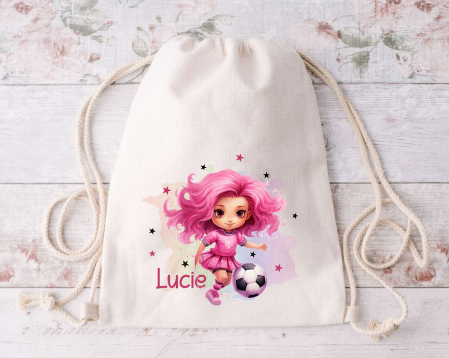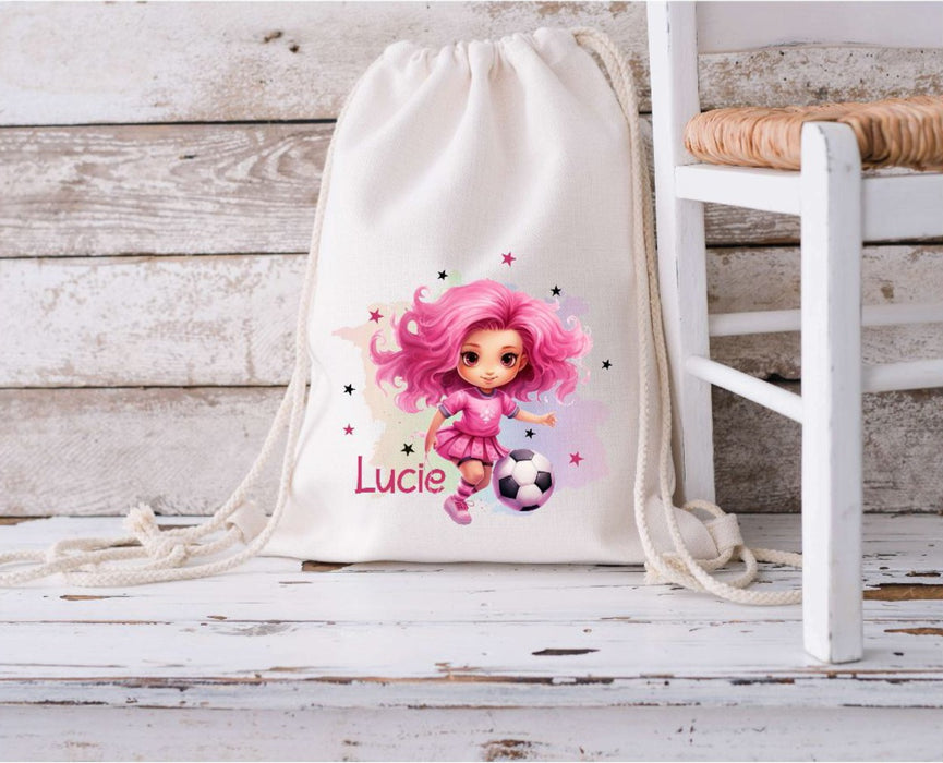 Kinder Turnbeutel Fußball personalisiert mit Name Mädchen Sportbeutel Zugbandbeutel