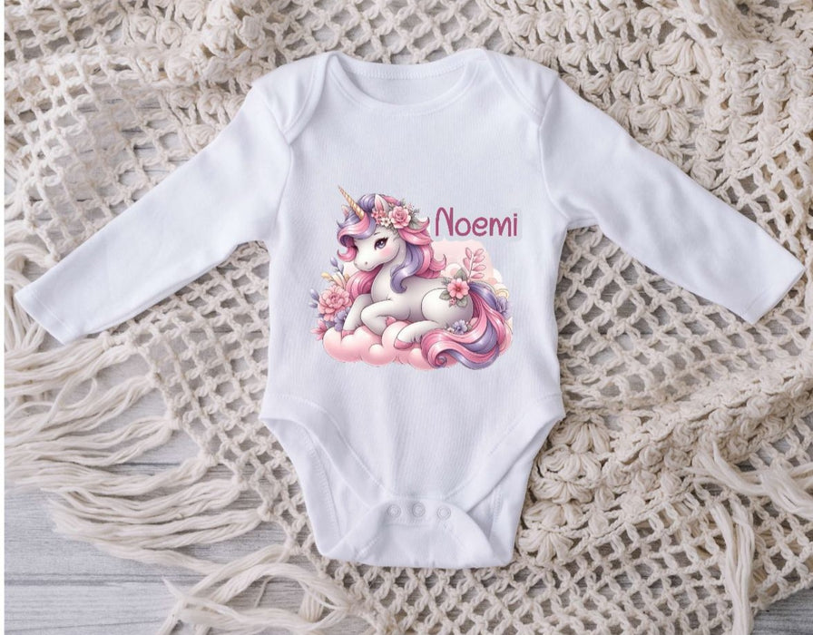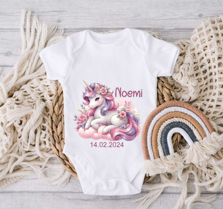 Babybody personalisiert Baby Body mit Name Einhorn Mädchen Baumwolle Strampler Baby