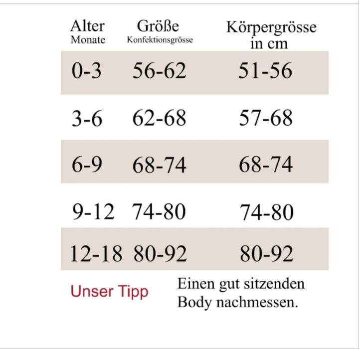 • Waschhinweise beachten: Befolgen Sie die angegebenen Pflegehinweise, um die Sicherheit und Qualität des Babybodys zu erhalten (z. B. Waschtemperatur, Verwendung von sanften Reinigungsmitteln).