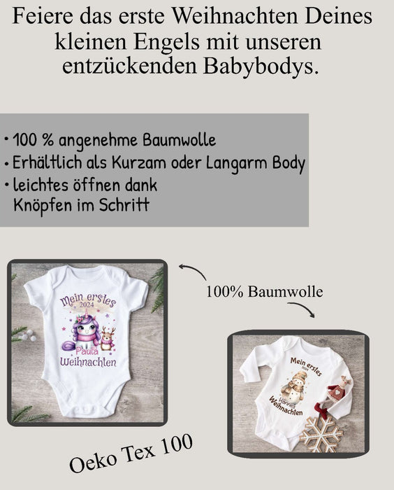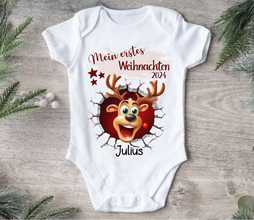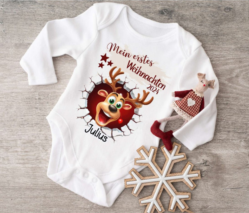 Mein erstes Weihnachten Baby Outfit Body Rentier Junge Babybody Langarm oder Kurzarm