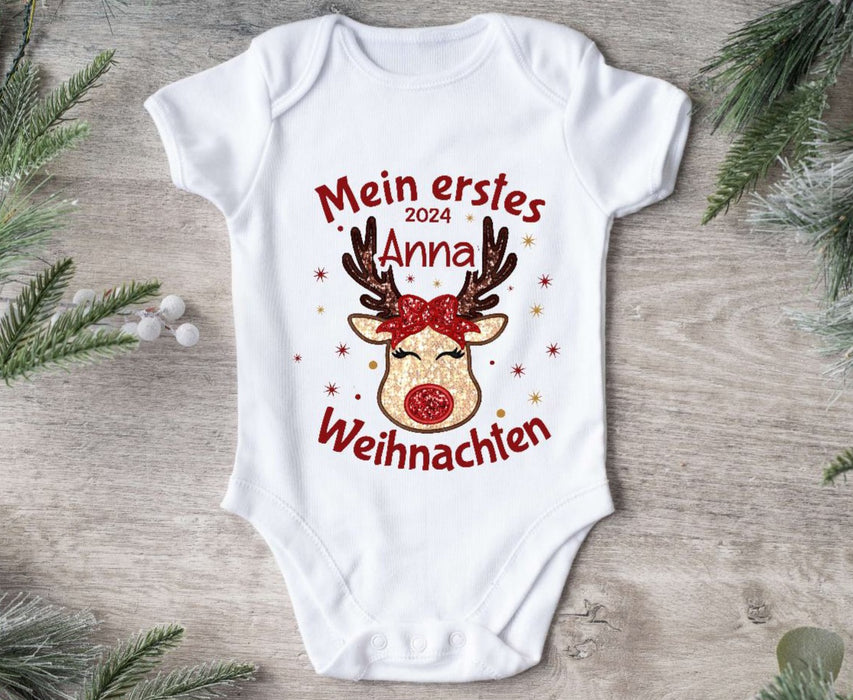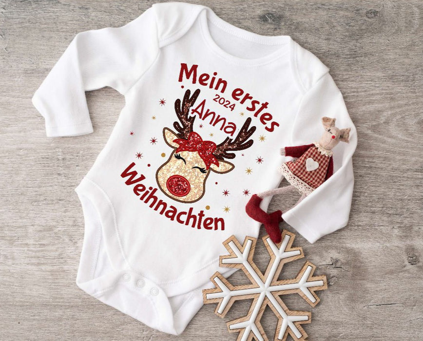 Mein erstes Weihnachten Baby Outfit Body Rentier Elch Mädchen Babybody Langarm oder Kurzarm