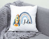 Personalisiertes Kissen Regenbogen Rakete Junge Kinderkissen Kissenhülle Kissenbezug mit Reißverschluss 40x40cm