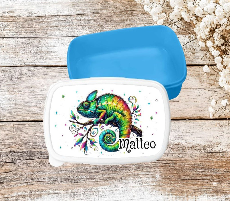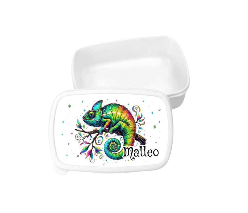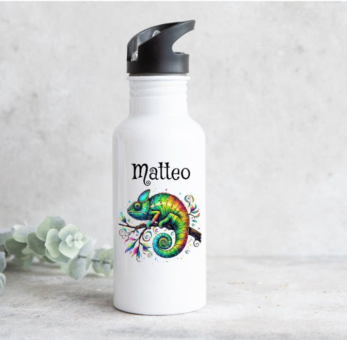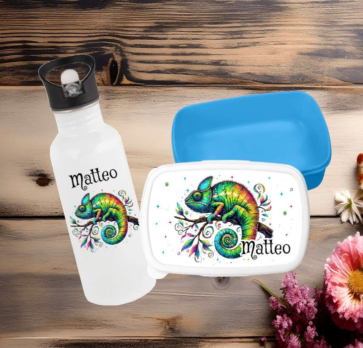 Set Brotdose und Trinkflasche personalisiert mit Namen Chamäleon Edelstahl 500ml Lunchbox Jungen