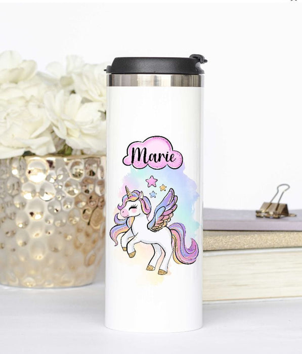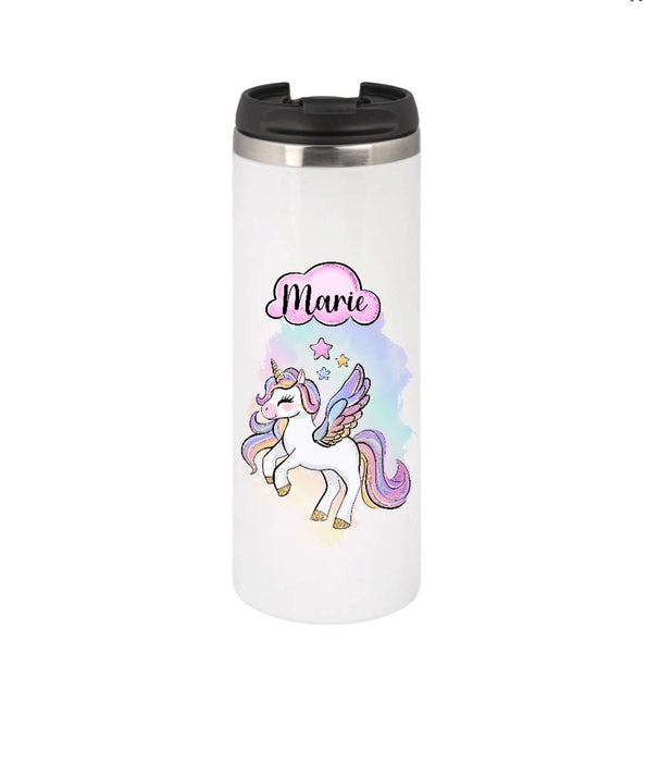 Thermobecher personlisiert mit Namen Einhorn Mädchen to go Becher Trinkbecher Warmhaltebecher mit Deckel Edelstahl