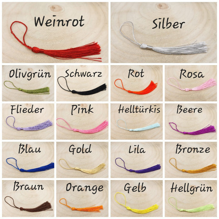 Die Farbe der Pommel-Quasten können Sie selbst wählen und ist einmalig im Lieferumfang enthalten.