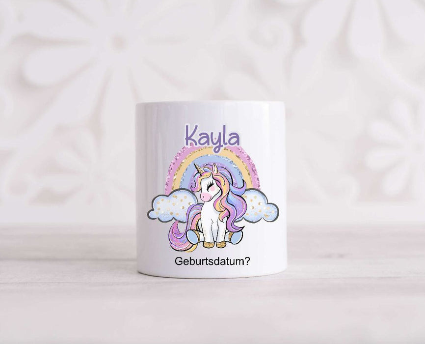Spardose Kinder personalisiert mit Name Einhorn Mädchen Keramik Kinderspardose Geschenk Geburt Geburtstag Einschulung Taufe