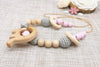 Auch im Tragetuch bieten die Stillketten eine ansprechende Beschäftigung für kleine Babys.